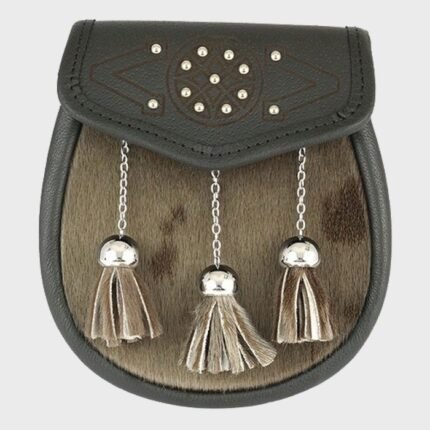Semi Dress Sporran – Grey Black Rabbit Fur Cross Stud Emboss
