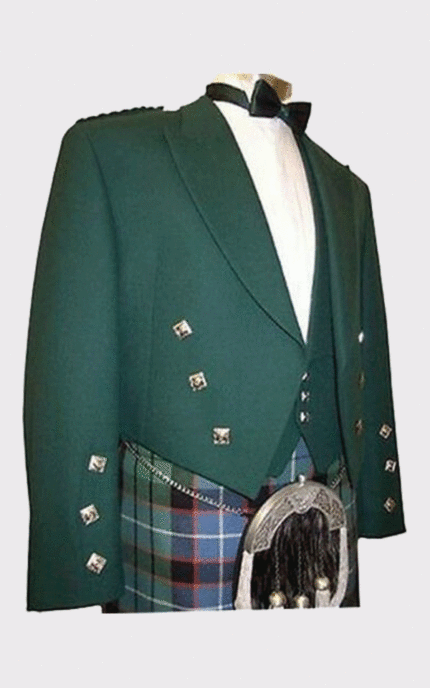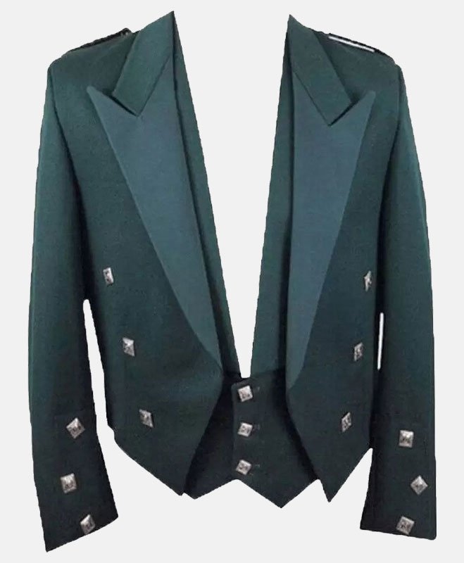100 % Wool Green Prince Charlie Jacket with Waistcoat