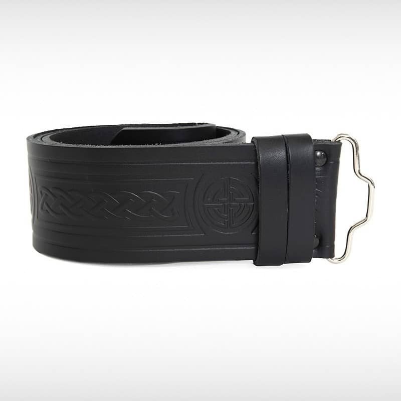 High Quality Embossed Leather Scottish Highland Kilt Belt with Celtic Buckle