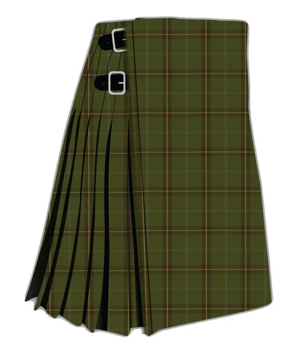 Showcasing an earthy olive green and brown grid, highlighted with subtle red and mustard lines, this tartan delivers a refined Highland appearance perfect for traditional or modern events.