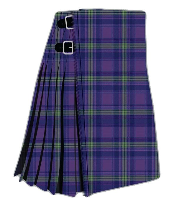 Crafted from premium acrylic wool, the kilt features the authentic Monarch of the Glen tartan, distinguished by its regal combination of purple, green, and navy tones. This bold pattern symbolizes nobility, strength, and Scottish pride. Each pleat is expertly hand-stitched, ensuring structure, movement, and a refined Highland silhouette that holds its shape beautifully.