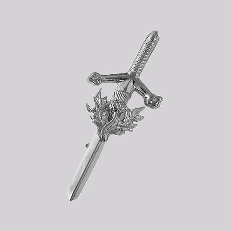 Chromed Sword Kilt Pin with Celtic Shield Design